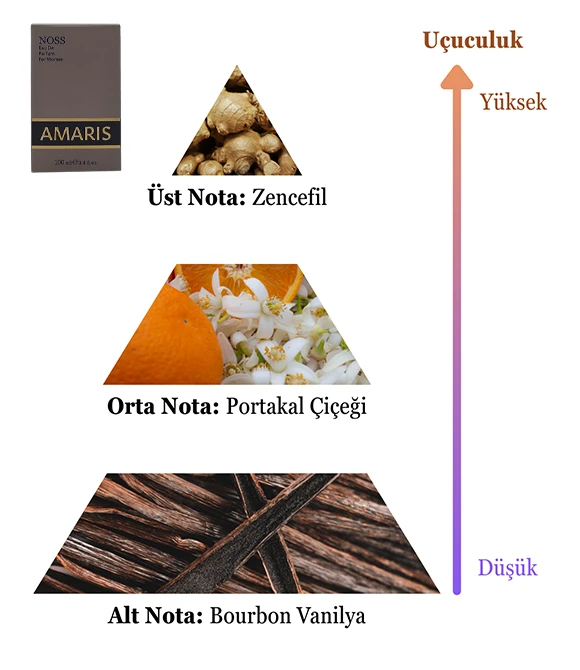 NOSS AMARIS, kadının içsel gücünü ve duygularının zarif karmaşasını anlatır. Her nota, bir ruh halinin yankısıdır: başlangıçta tutku, ortasında zarafet, sonunda huzur. Bu parfüm, görünmeyeni hissetmek, kendi hikâyesini kokusuyla yazmak isteyen kadınlar için tasarlandı.