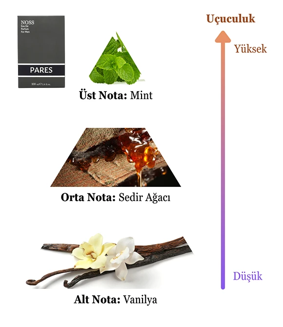 • Alt Nota – Vanilya: Tatlı ve kalıcı kapanışıyla parfüme romantik bir dokunuş ekler. Vanilyanın sıcaklığı, PARES’in prestijli ve çekici imzasını tamamlar.